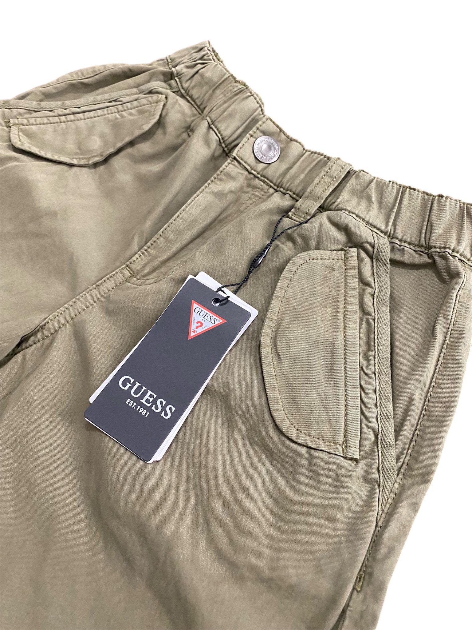 Pantalone Guess, modello morbido con polsino alla caviglia, di colore verde oliva.