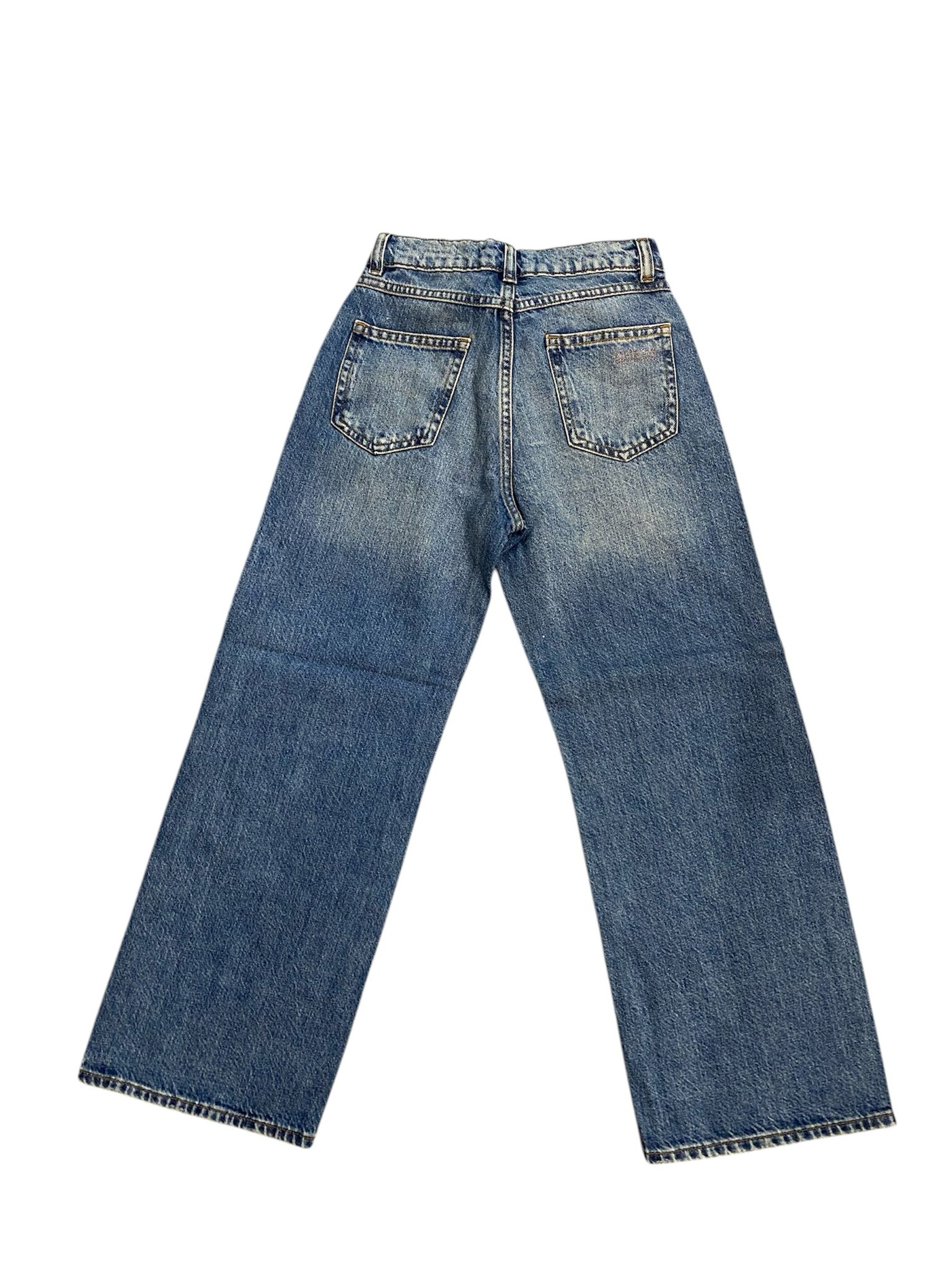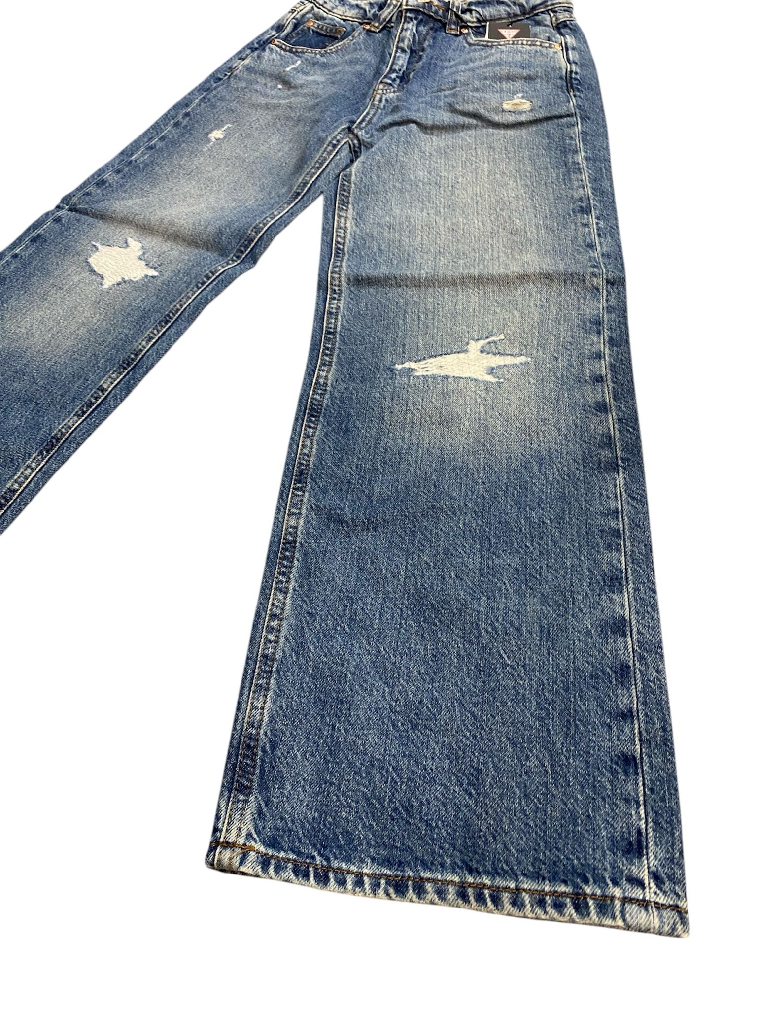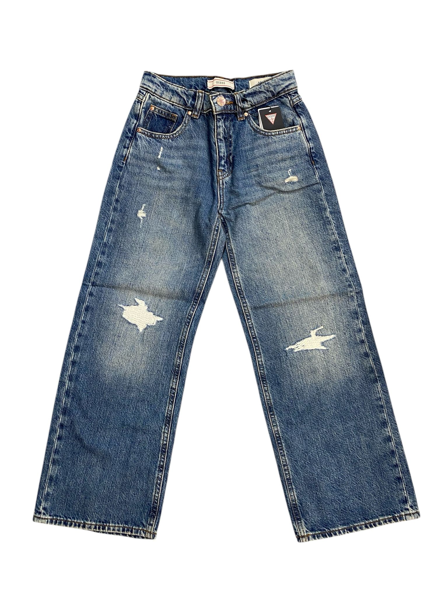 Jeans  5 tascheGuess a gamba larga, color denim sfumato con finte rotture.