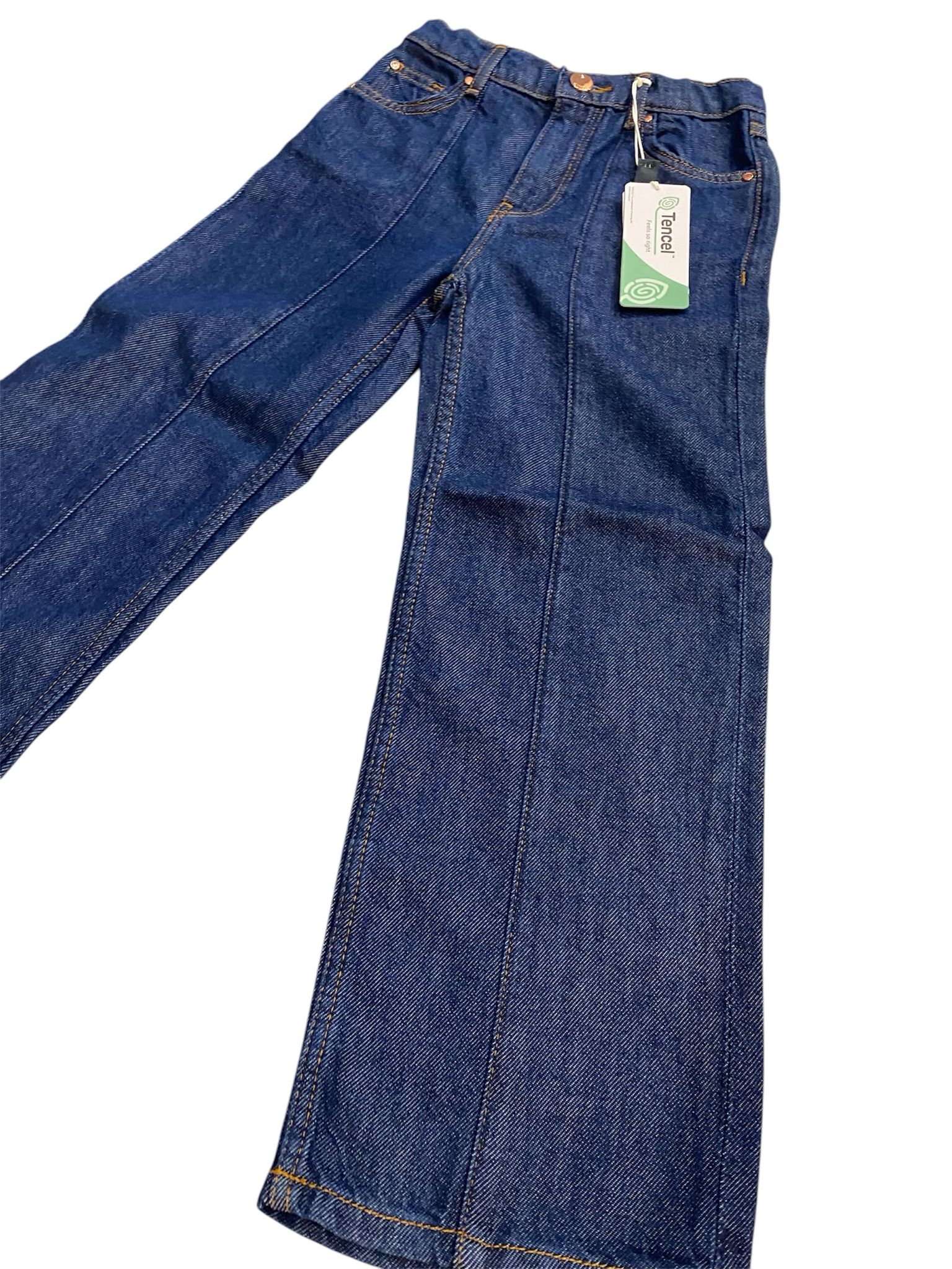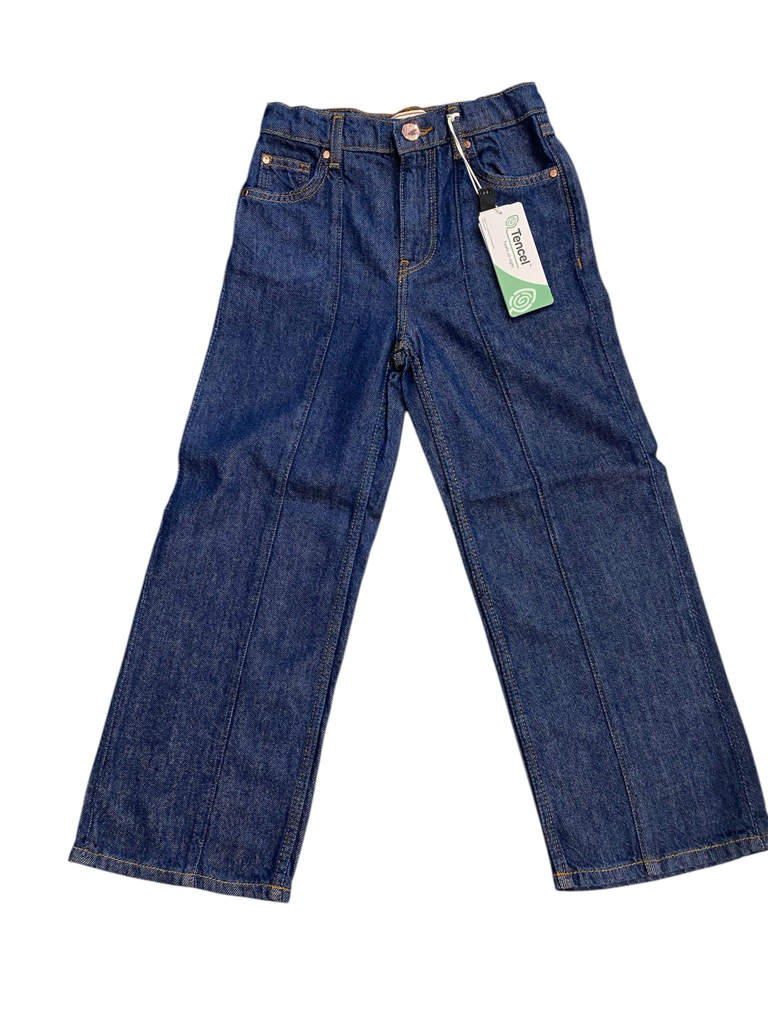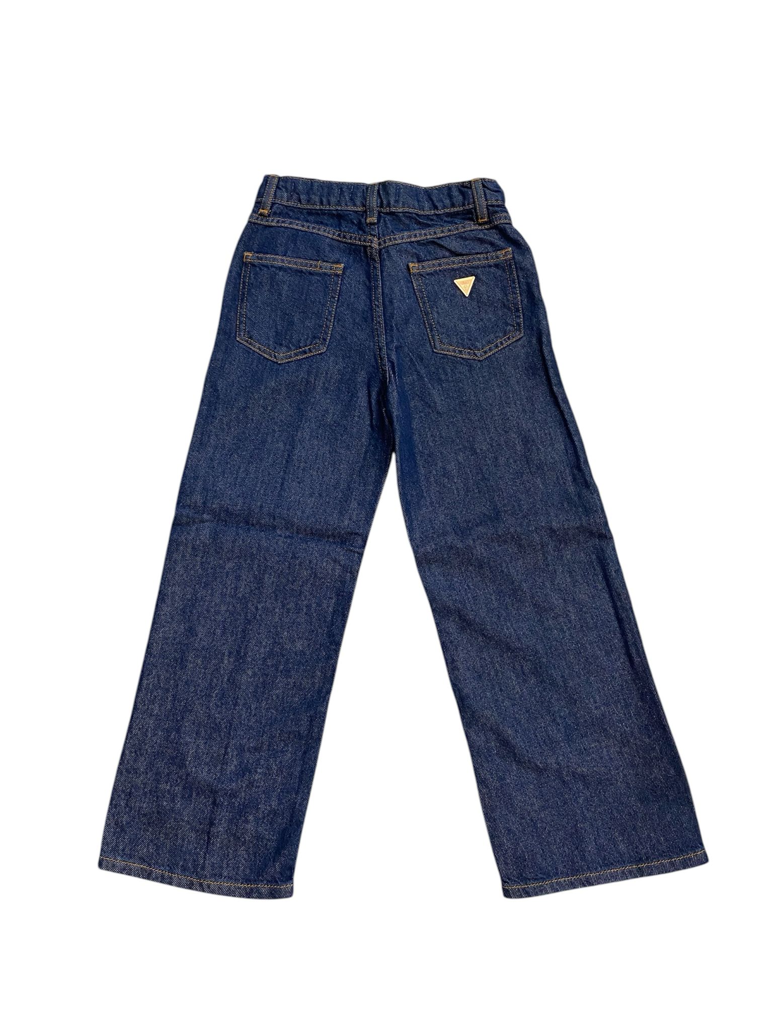 Jeans 5 tasche Guess di color blu a gamba larga, in tela leggera con triangolo nella tasca posteriore.