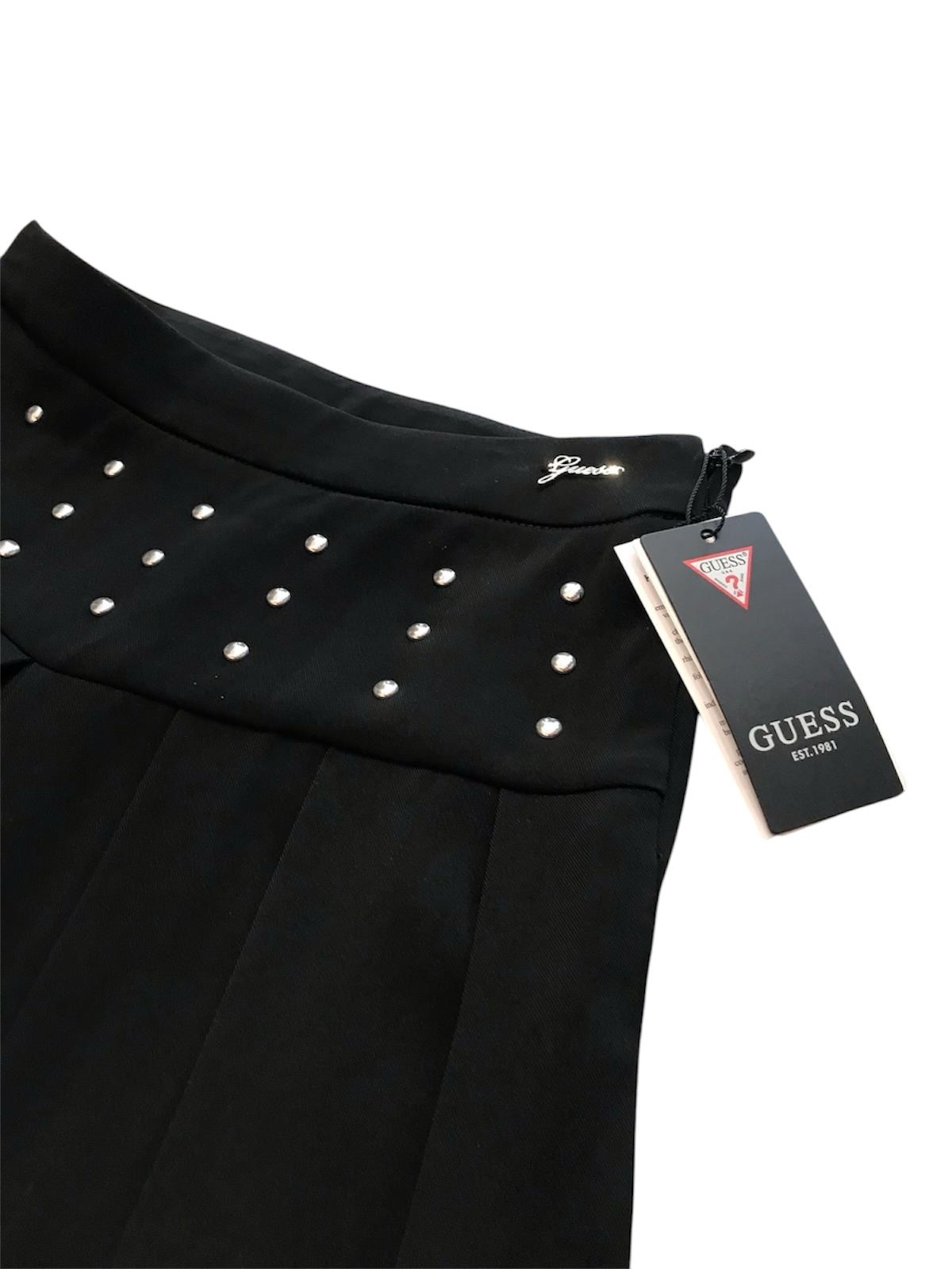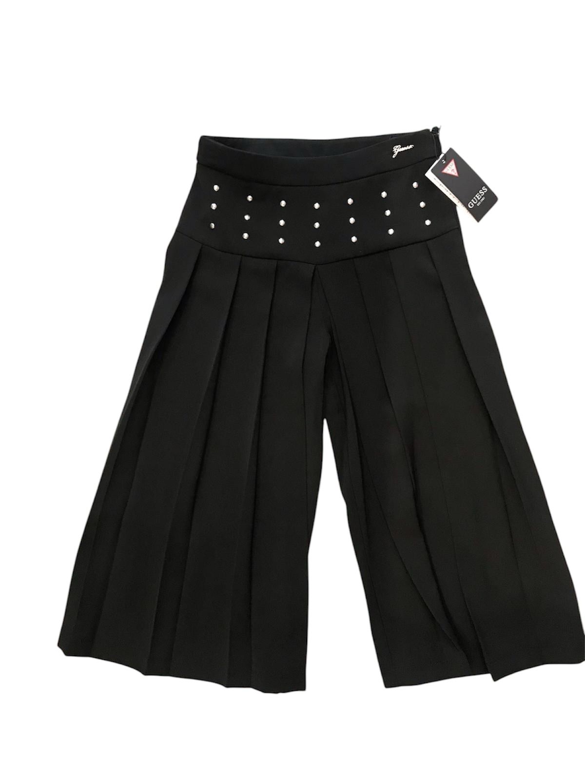 Pantalone elegante Guess di colore nero a gamba larga, con strass in cintura, chiusura laterale con zip.
