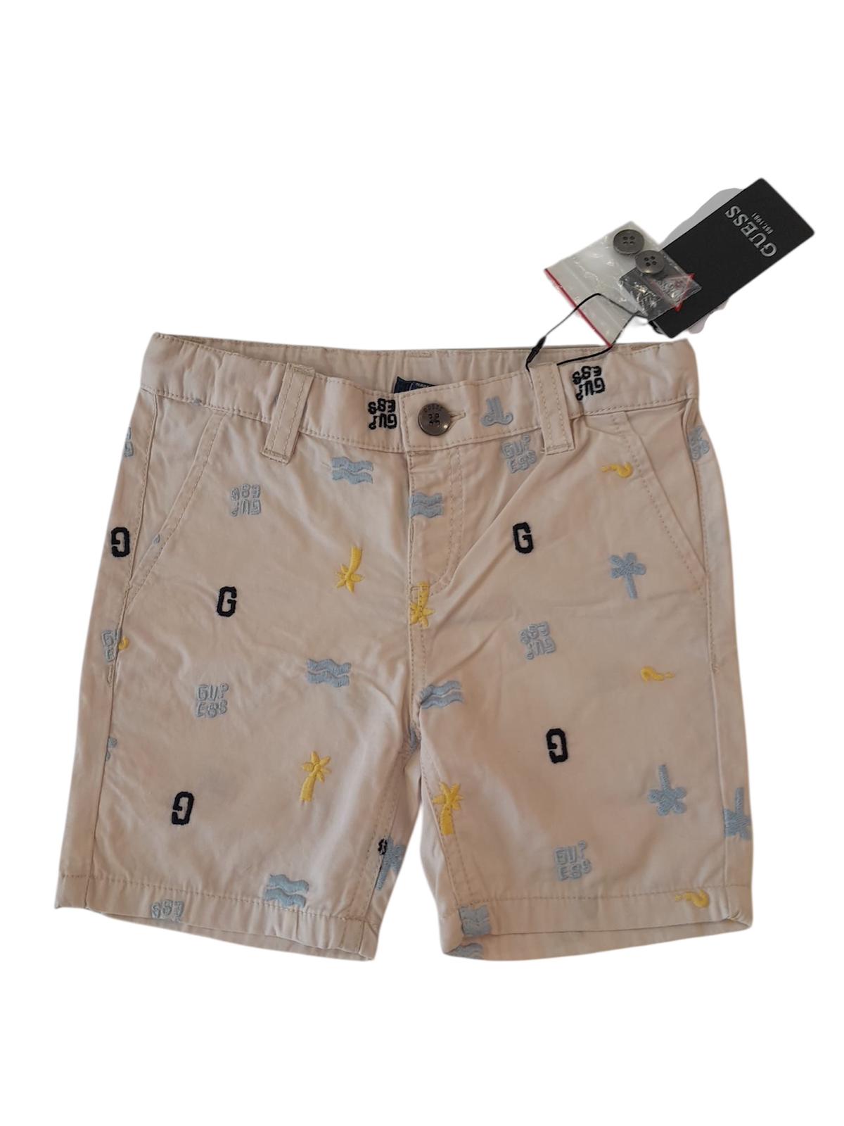 Bermuda Guess, di colore beige chiaro con disegni ricamati.